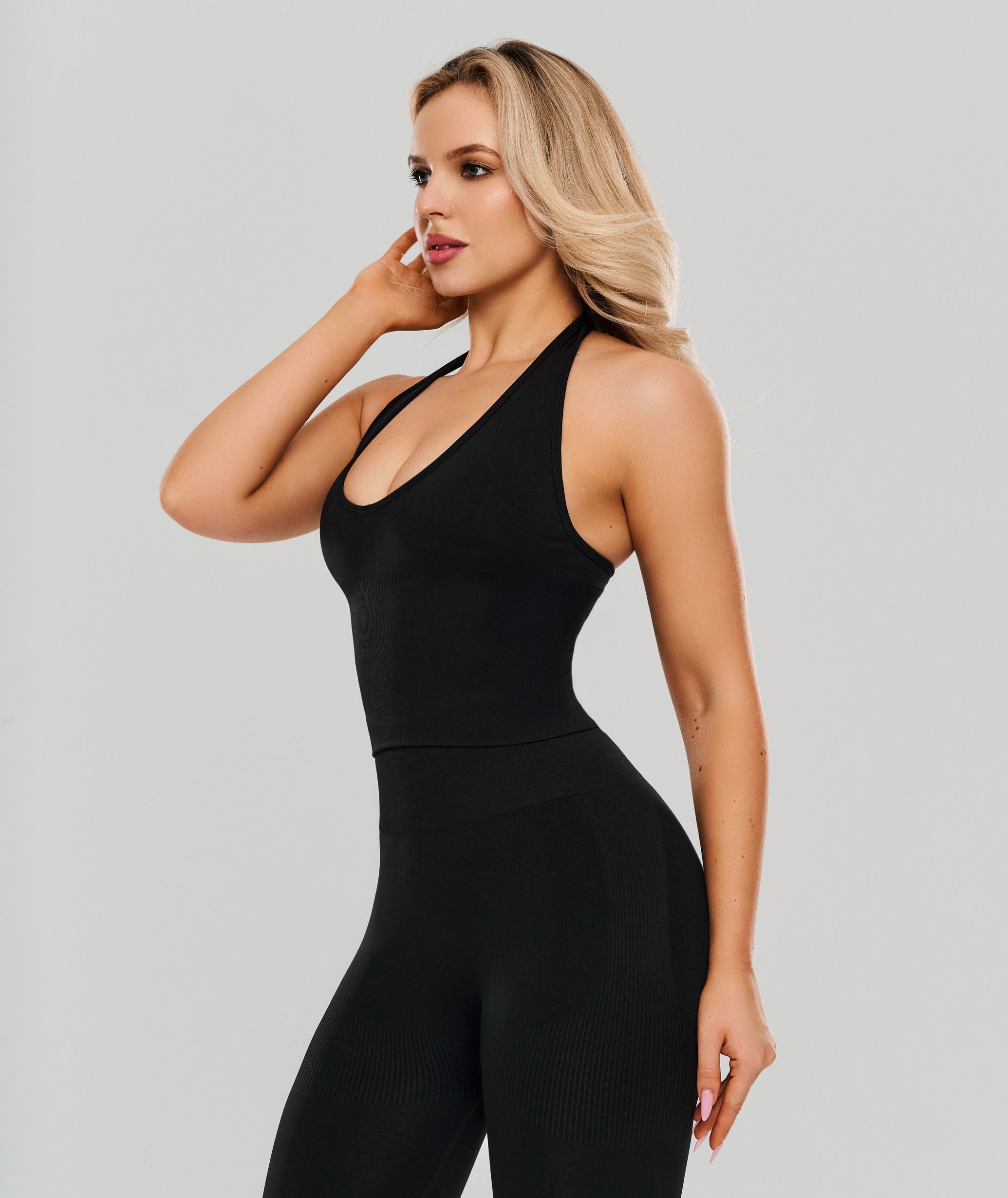 • открытая спина и плечи для тех кто любит наблюдать работу мышц на тренировке
